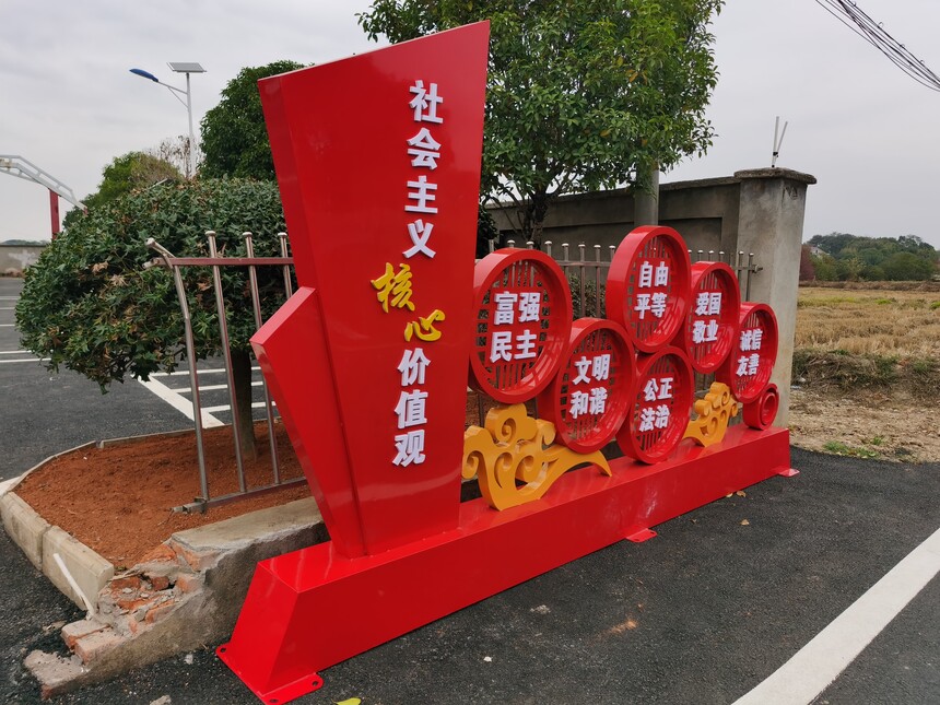 村委黨建立牌、社會主核心價值觀標識牌采用鍍鋅板烤漆制作,可設(shè)計各種款式,上門安裝。